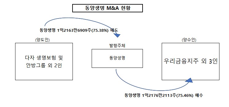 이날 중국의 다자생명보험 외 4인은 소유한 주식 약 1억2163만주(75.38%)를 장외매도했다. 이후 우리금융 외 3인은 약 1억2176만주(75.46%)를 매수하며 최대주주 지위를 확보했다.