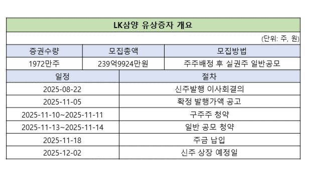 LK삼양, 시총 3분의1 규모 주주배정 유증…미달 시 주가 하락 우려