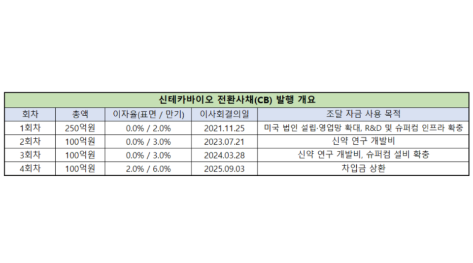 신테카바이오가 300억원대의 주주배정 유상증자를 추진한다. 그동안 전환사채(CB)를 발행해 막아온 고금리 빚을 털어내고, 관리종목 지정 사유인 법인세차감전손실(법차손) 비율을 낮추기 위한 행보로 풀이된다.