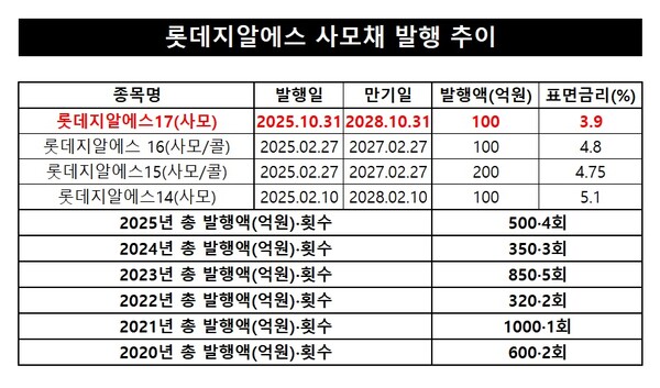이번 사모채로 롯데GRS는 2년 만에 조달 시장에서 다시 기지개를 켜는 모습이다. 2023년 연 5회 발행하며 최다 횟수를 기록한 이후 지난해 3회로 줄었다가 이번에 연간 4회차를 기록했다.