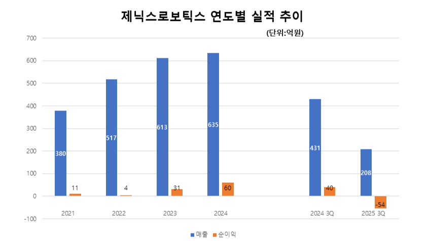 상장 1년 만에 CB를 추진하게 된 데는 급격한 실적 악화가 꼽힌다. 제닉스의 올 3분기 매출은 208억원으로 전년 동기 대비 51.8% 감소했다. 영업이익은 36억원에서 -82억원으로, 순이익은 40억원에서 -54억원으로 모두 적자 전환했다.